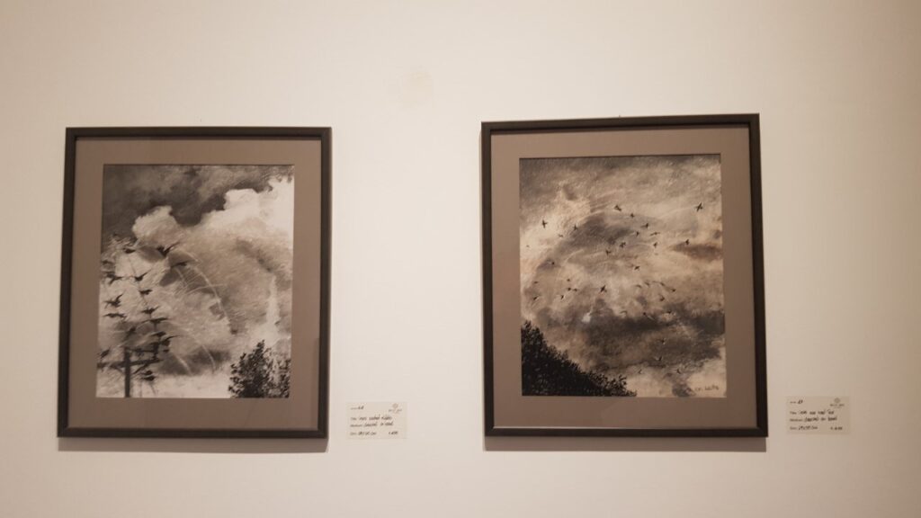 Έργο της επίσης ξεχωριστό αποτελεί και το σχέδιο με κάρβουνο μιας καρακάξας που περπατά με σκοπό αλλά και ένας πίνακας με τραγούδια πουλιών. Όπως αναφέρει, το κομμάτι τραγουδιού πουλιών περιγράφει τον ήχο που ακούγεται από τα πουλιά μελισσοφάγους που μπορεί να ακούσει, όταν τα πουλιά μαζεύονται ψηλά στον ουρανό και ετοιμάζονται να μεταναστεύσουν. «Προσπαθώ να μετατρέψω τον ήχο σε όραση, χρησιμοποιώντας τα ίδια φωτεινά χρώματα του καυχησιολογικού φτερού, στον πλούσιο μπλε ουρανό της Κύπρου», λέει.