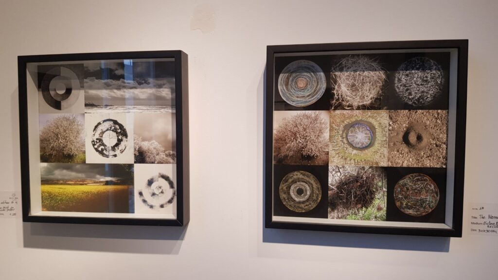 Η έκθεση της περιλαμβάνει και έργα με άγρια φυτά, με κλωστές και υφάσματα. Αυτά, δηλώνει, «τα επιστρέφω στη φύση. Εκεί που ανήκουν».