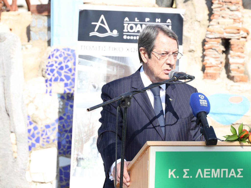 Κατέθεσε τον θεμέλιο λίθο του Πολιτιστικού Χωριού Λέμπας, στην Πάφο και μίλησε στους κατοίκους.