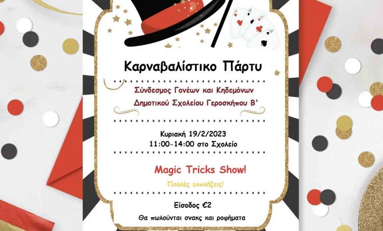 Θα πραγματοποιηθεί στο σχολείο καρναβαλίστικο πάρτυ. Είσοδος θα είναι 2 ευρω