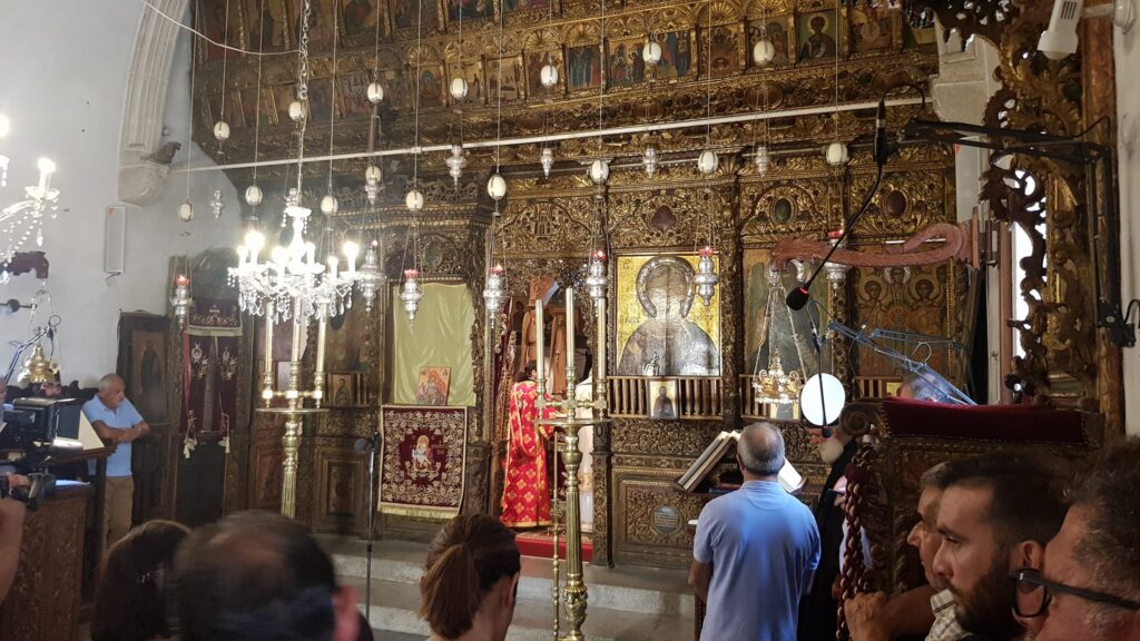 Με ιδιαίτερη κατάνυξη πλήθος κόσμου βρέθηκε στην πανηγυρίζουσα Ιερά Μονή Παναγίας Χρυσορρογιατίσσης, τόσο την παραμονή στον Εσπερινό όσο και ανήμερα το πρωί.