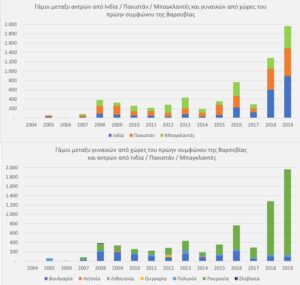 Πόσο πιθανό είναι οι αριθμοί που ακόυμε και διαβάζουμε να είναι χαμηλοί; Στα δημοσιευμένα στοιχεία από τη Στατιστική Υπηρεσία (τα πιο πρόσφατα στοιχεία είναι μέχρι το και το 2019), παρατηρούμε για παράδειγμα την αλματώδη αύξηση (πολιτικών) γάμων μεταξύ αντρών με καταγωγή την Ινδία, το Πακιστάν και το Μπαγκλαντές και γυναικών κύριως από τη Ρουμανία. Οι γάμοι αυτοί ανήλθαν για το 2019 σε περίπου 2000 ή το 25% του συνόλου των γάμων που πραγματοποιήθηκαν στην Κύπρο το 2019 (!).