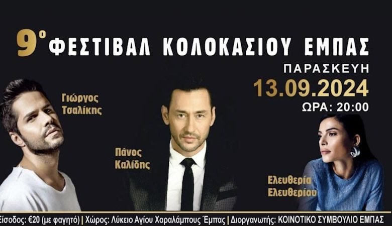 To φεστιβάλ θα πραγματοποιηθεί την Παρασκευή 13 Σεπτεμβρίου 2024 και ώρα 20:00 στο λύκειο Αγίου Χαραλάμπους Έμπας.