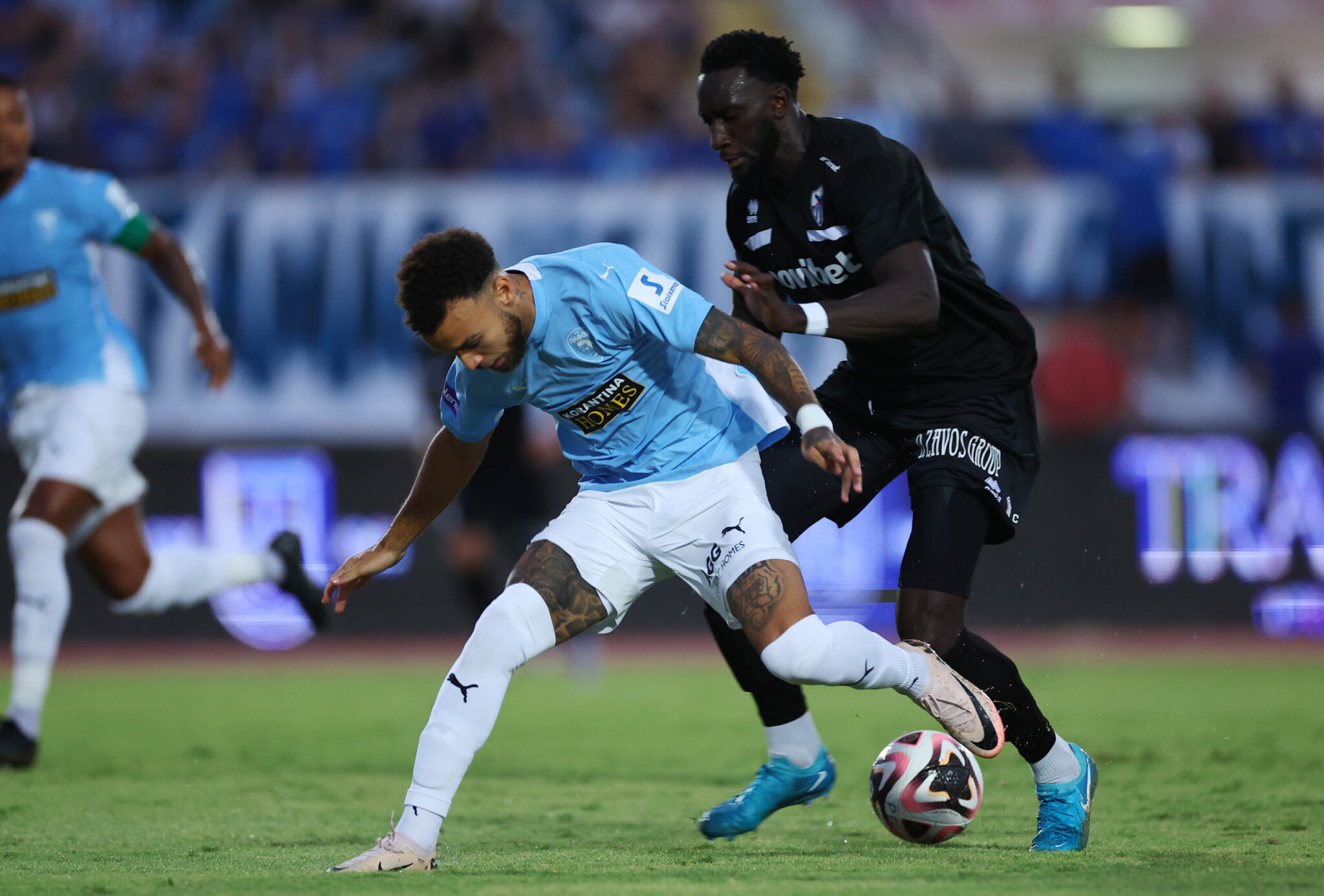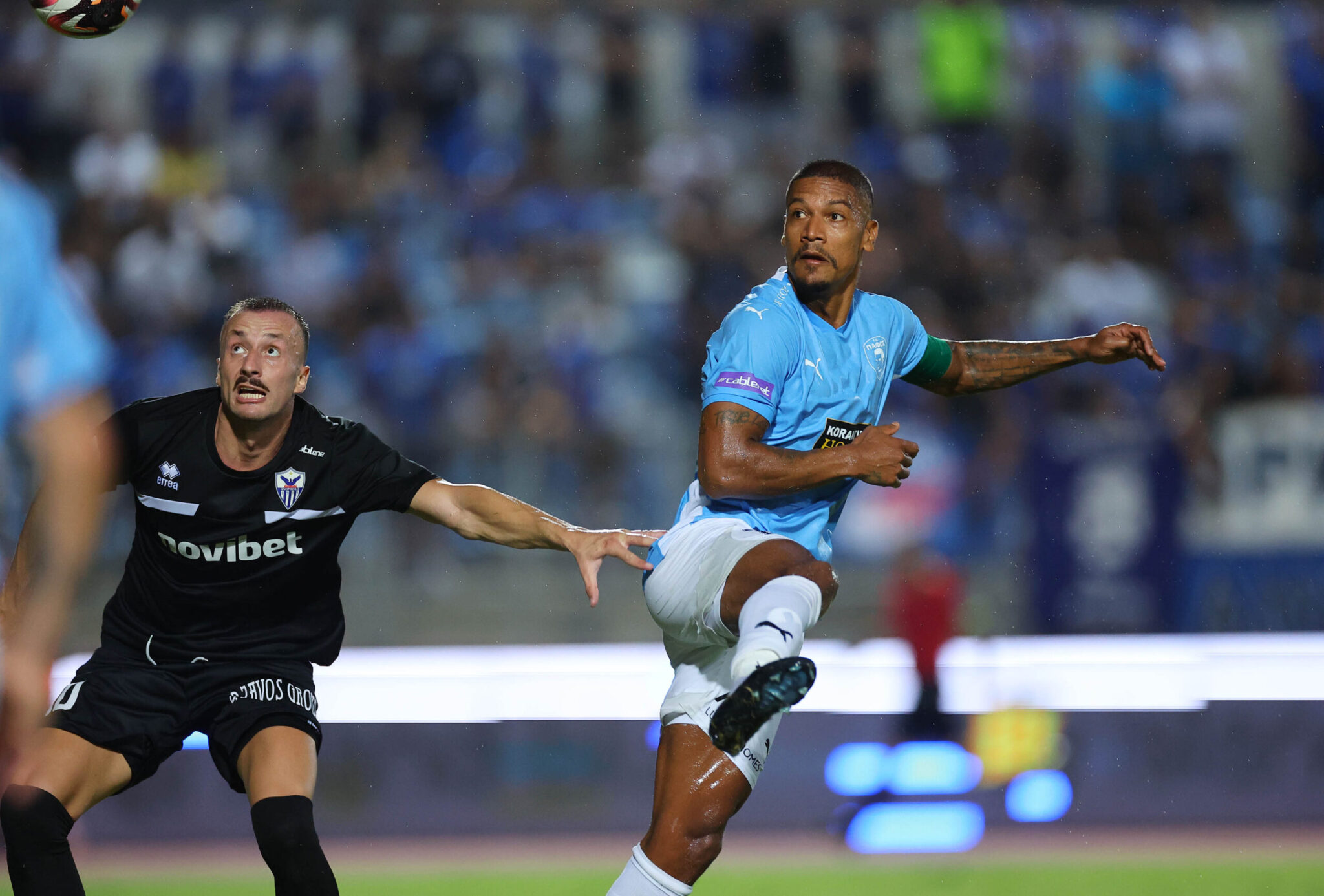 Επίσης, οι κυανόλευκοι έμοιαζαν ευάλωτοι στην άμυνα, αντιμετωπίζοντας δυσκολίες στο πρεσάριμα των γηπεδούχων και υποκύπτοντας σε λάθη. Από ένα λάθος του Μλάντοβιτς απειλήθηκαν στο 36’, όταν μετά από φάση διαρκείας ο Τζάτζα σκόραρε, όμως το γκολ ακυρώθηκε. Δεν στάθηκαν, όμως, το ίδιο τυχεροί στη φάση του 40ου λεπτού, όταν μετά από λανθασμένη κεφαλιά προς τα πίσω του Χρυσοστόμου, ο Ζάιρο δεν δυσκολεύτηκε να σκοράρει από κοντά.