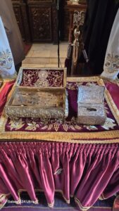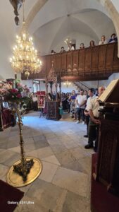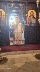Στο τέλος της Θείας Λειτουργίας έγινε περιφορά, γύρω από τον ναό, των τιμίων λειψάνων και της ιεράς εικόνος του Αγίου και δέηση.