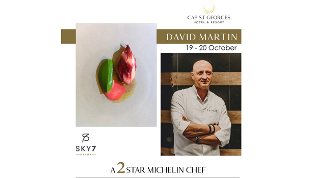 We are thrilled to announce that Chef David Martin will be joining us at the Cap St Georges Hotel & Resort on the 19th and 20th of October. This is a unique opportunity to experience the exceptional cuisine of a two-Michelin-starred chef, renowned for his innovative approach and bold flavors.