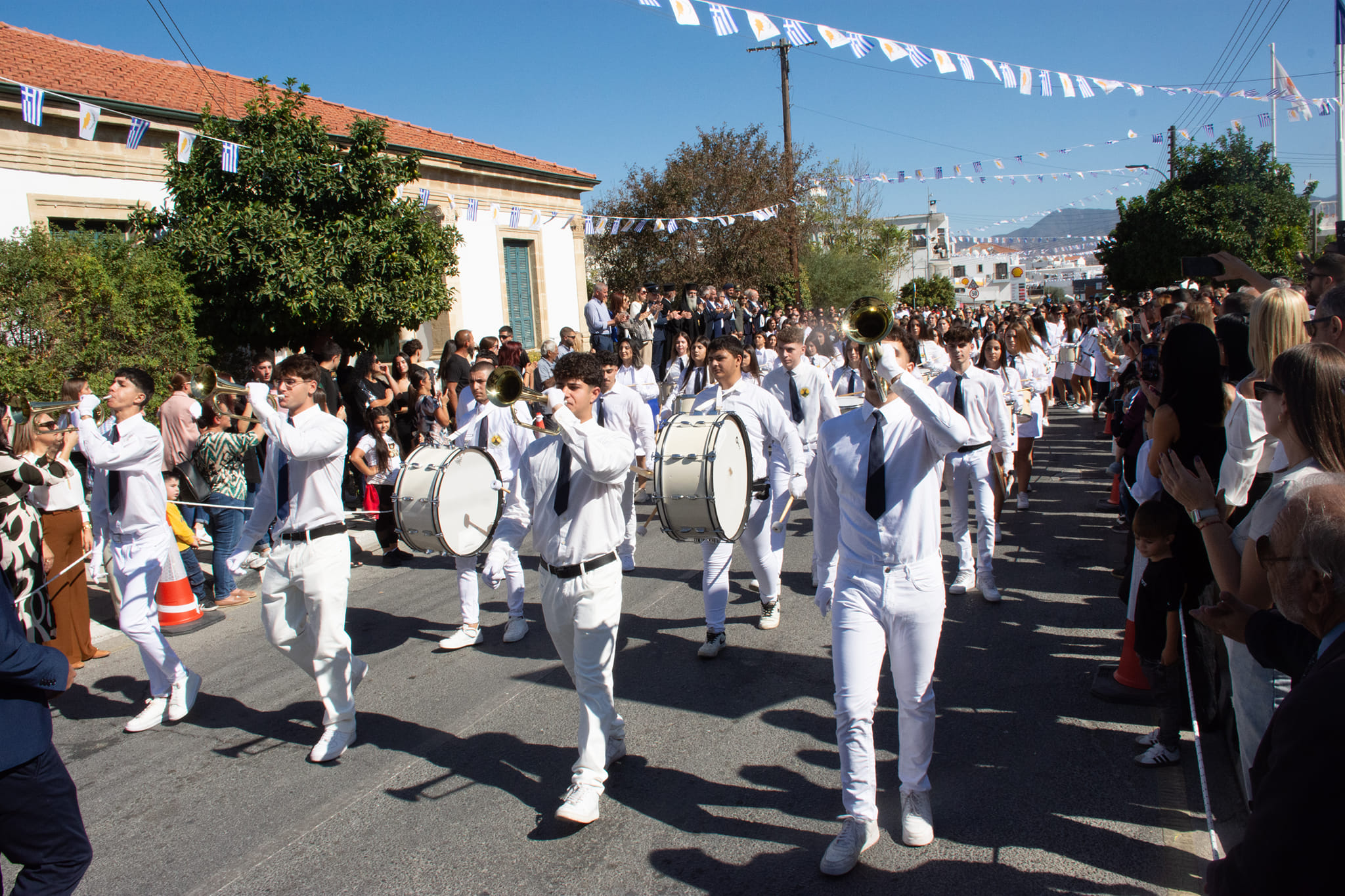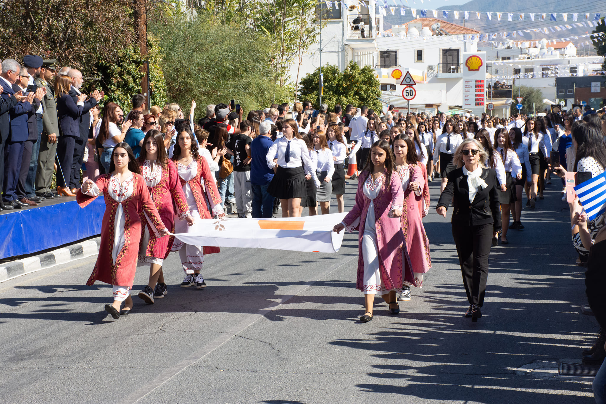 Ακολούθησε παρέλαση στην οποία συμμετείχαν μαθητές και μαθήτριες από δημόσια και ιδιωτικά εκπαιδευτήρια Προδημοτικής, Δημοτικής, Μέσης και Τεχνικής Εκπαίδευσης από ολόκληρη την περιφέρεια Πόλης Χρυσοχούς.