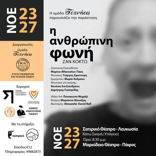 Το κοινό έχει την ευκαιρία να παρακολουθήσει το σπουδαίο έργο του Ζαν Κοκτώ, Η Ανθρώπινη Φωνή, από την ομάδα Τεχνήεις στις 23 και 27 Νοεμβρίου 2024.