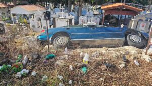 Ένα πρωτοφανές ατύχημα σημειώθηκε στο Α νεκροταφείο Πάφου όταν αυτοκίνητο κάτω από άγνωστες συνθήκες κάρφωσε στην κυριολεξία πάνω στους τάφους προκαλώντας ζημιές.