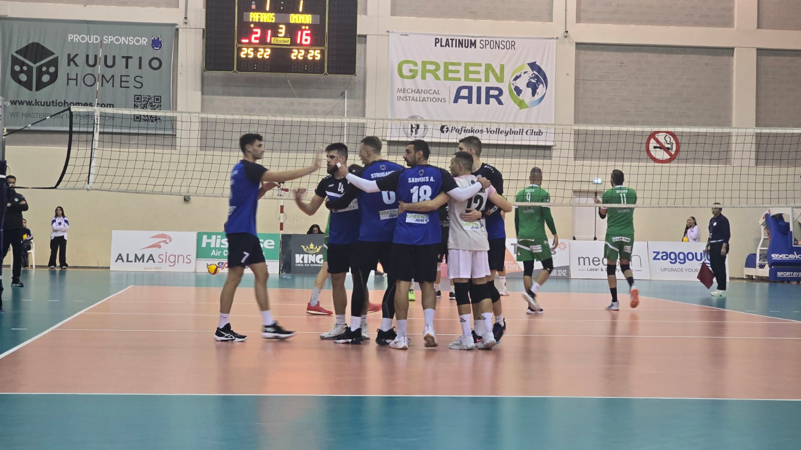 Σημαντική νίκη με 3-1 σετ πέτυχε χθες βράδυ στο κλειστό Γήπεδο Αφροδίτη στην Πάφο ο Kuutio Homes Παφιακός με αντίπαλο την Ομόνοια.Οι γηπεδούχοι επικράτησαν των αντιπάλων τους με 25-22, 22-25, 25-17 και 25-15 σε μια ώρα και σαράντα τρία λεπτά . Με τη νίκη αυτή η ομάδα του Γιώργου Πλατρίτη ανέβηκε μόνη πρώτη στην κορυφή της βαθμολογίας με 20 βαθμούς έναντι 17 της Ομόνοιας που έχει όμως ένα αγώνα λιγότερο.