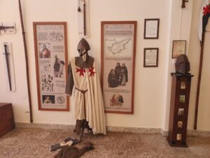 Στο ισόγειο του Μουσείου Ναϊτών ιπποτών εκτίθεται οπλισμό της τότε εποχής που χρησιμοποιούσαν οι Ναΐτες που ήταν στην Κύπρο, όπως σπαθιά, τόξα, βέλη και ακόντια, ενώ στον πρώτο όροφο τα εκθέματα περιλαμβάνουν στολές, πανοπλίες, κορώνες και οι ενδυμασίες γενικά που φορούσαν οι Ναϊτες ιππότες.