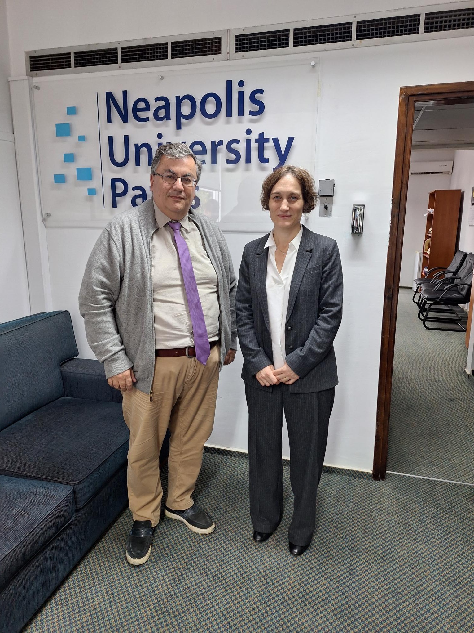 Ο Πρύτανης του Πανεπιστημίου Νεάπολις Πάφος, Καθηγητής Παντελής Σκλιάς, είχε σήμερα συνάντηση με την Πρέσβειρα της Γαλλίας στην Κύπρο, κ. Clélia Chevrier Kolačko, η οποία συνοδευόταν από συνεργάτες της.