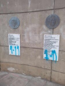 Οι άγνωστοι έγραψαν συνθήματα με σπρέι και μπογιές αφήνοντας πίσω τους αυτή την άσχημη εικόνα.