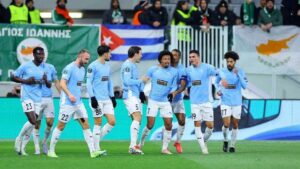 Οι γαλάζιοι με γκολ των Μπρούνο (28’) και Σίλβα (65’) βγήκαν νικητές στον ιστορικό πρώτο κυπριακό «εμφύλιο» σε ευρωπαϊκές διοργανώσεις και στην πρώτη τους παρουσία στην Ευρώπη φτάνουν θριαμβευτικά σε νοκ άουτ φάση.