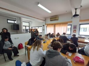 Στο πλαίσιο των δράσεων της Επιτροπής Βιβλιοθήκης του σχολείου μας, πραγματοποιήθηκε στις 26 Φεβρουαρίου Λογοτεχνική Συνάντηση με ομάδα μαθητών από όλες τις τάξεις. Το βιωματικό εργαστήρι με τίτλο «Show don’t tell», παρουσίασε η ποιήτρια Δρ. Μαρία Α. Ιωάννου.