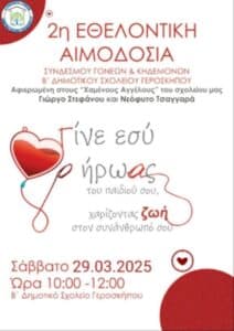 Αιμοδοσία υπό τον τίτλο “Γίνε εσύ ο ήρωας του παιδιού σου, χαρίζοντας ζωή στο συνάνθρωπο σου”