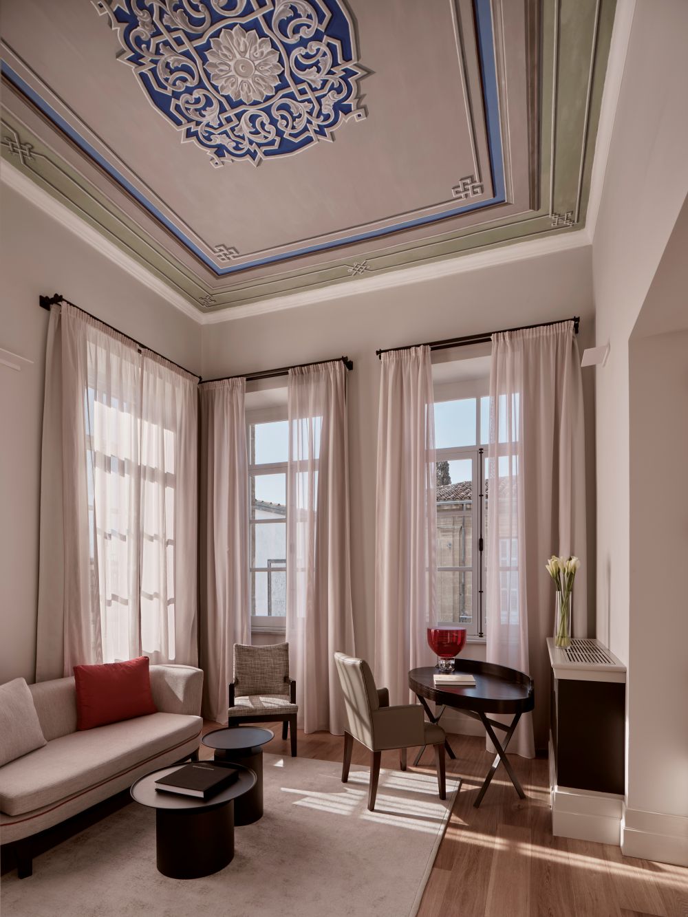 Οι εσωτερικοί του χώροι χρονολογούνται από τις αρχές του 1900 και διατηρούν παραδοσιακές λεπτομέρειες της εποχής, ενώ τα αυθεντικά δάπεδα, η μεγάλη και επιβλητική σκάλα και η προσεγμένη διακόσμηση προσθέτουν στη γοητεία και αρχοντιά του ξενοδοχείου. Την αρχιτεκτονική προσέγγιση του έργου έχει αναλάβει το γραφείο Ηρακλής Παπαχρίστου και τη διακόσμηση των εσωτερικών και εξωτερικών χώρων η Μαρία Νεοφύτου.