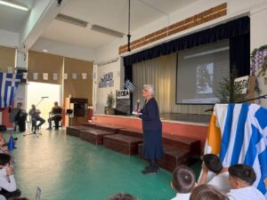 Στη συνέχεια η γυναίκα σύμβολο κατά της κατοχής, η οποία κράτησε ψηλά τη σημαία της Κύπρου και του Ελληνισμού στα σκλαβωμένα μας εδάφη, η ηρωική δασκάλα, ξεδίπλωσε τις δραματικές της θύμησες και τον απόηχο τους και μοιράστηκε συγκλονιστικές στιγμές με τους μαθητές με μηνύματα ευαισθητοποίησης προς όλους.