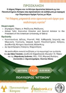 Ο Δήμος Πάφου και το Κέντρο Αριστείας biobank.cy του Πανεπιστημίου Κύπρου, σας προσκαλούν σε
