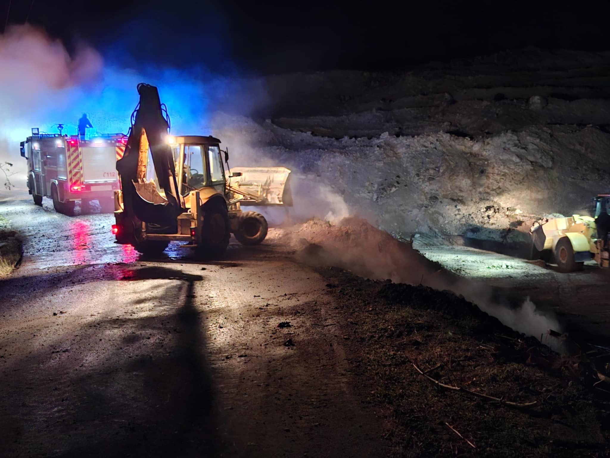 Στο Πράσινο Σημείο, συνέχισε ο κ. Λάμπρου τα συνεργεία του Δήμου Ακάμα που έσπευσαν, όπως εκσκαφείς, και βυτιοφόρο, παρείχαν οποιαδήποτε βοήθεια με σκοπό την κατάσβεση της πυρκαγιάς.