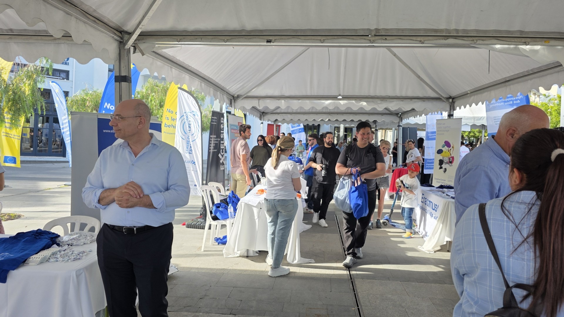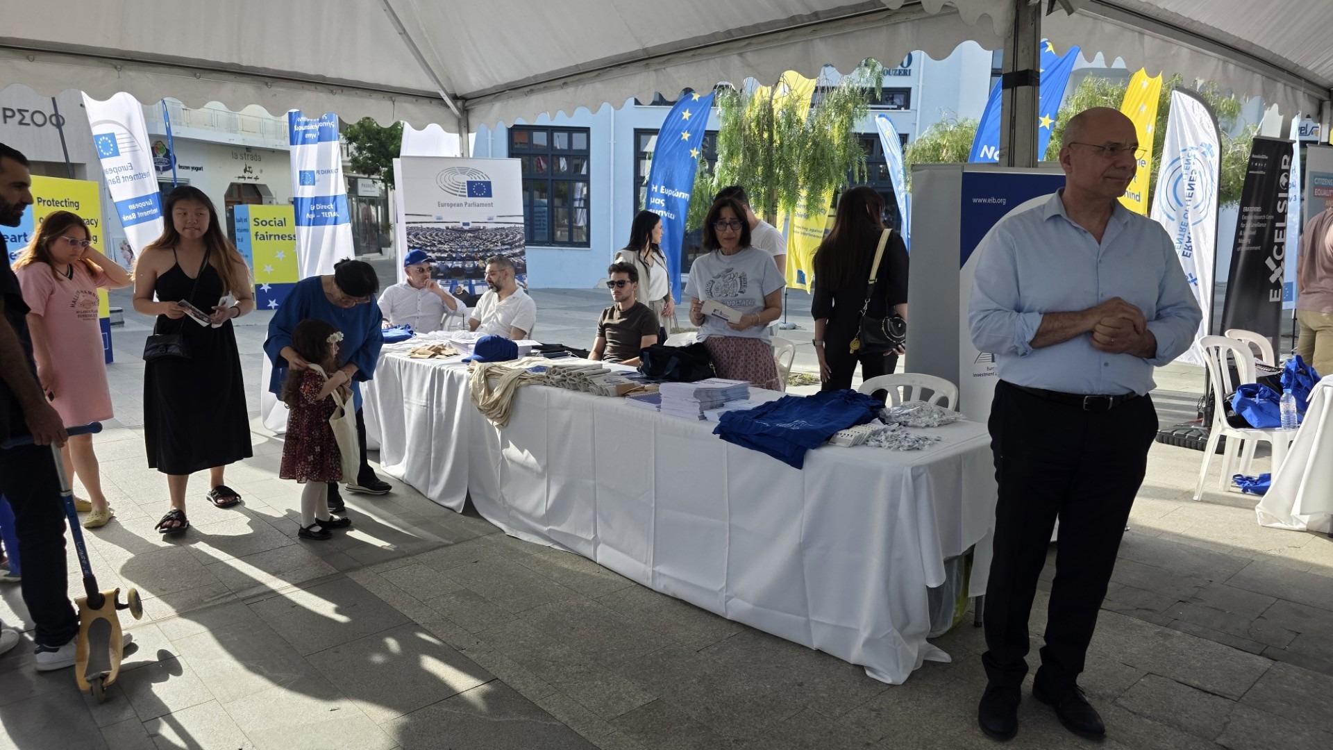 Από τις 5:00 το απόγευμα, η Πλατεία Κέννεντυ μεταμορφώθηκε σε ένα πολύχρωμο και ζωντανό «Ευρωπαϊκό Χωριό», φιλοξενώντας θεματικά περίπτερα που παρείχαν πληροφορίες για τις πολιτικές, τις δράσεις και τα προγράμματα της Ευρωπαϊκής Ένωσης. Οι επισκέπτες είχαν την ευκαιρία να γνωρίσουν από κοντά το έργο ευρωπαϊκών θεσμών, διπλωματικών αποστολών, ακαδημαϊκών και τοπικών φορέων.