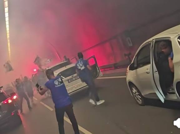 Η σήραγγα μετατράπηκε για αρκετή ώρα σε… ποδοσφαιρικό γήπεδο, με συνθήματα, τραγούδια και πανηγυρισμούς, δημιουργώντας ένα μοναδικό σκηνικό που μαγνήτισε τα βλέμματα.