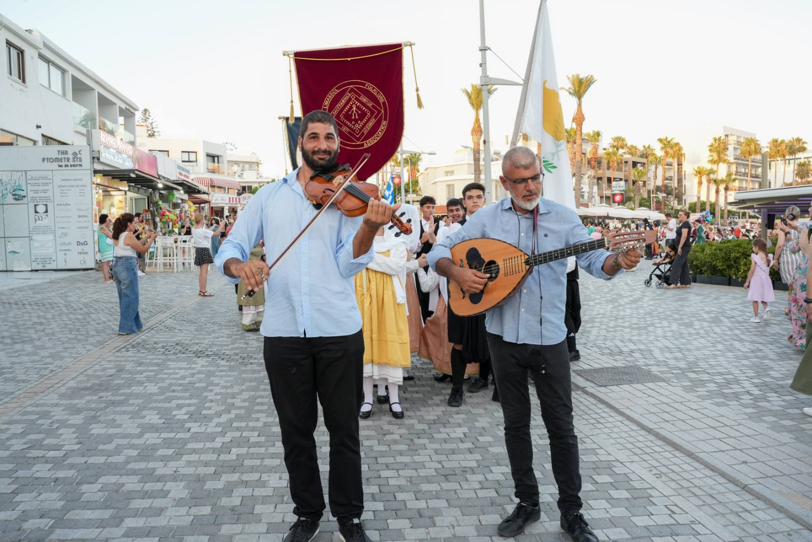 Η εκδήλωση ξεκίνησε με παρέλαση των ομάδων κατά μήκος του μόλου και συνεχίστηκε στα Δημοτικά Μπάνια με παράταξη σημαιών και λαβάρων, θερμό καλωσόρισμα από τον πρόεδρο του Λαογραφικού Ομίλου Λεμεσού κ. Κωνσταντίνο Πρωτοπαπά, χαιρετισμό από τον Αντιδήμαρχο κ. Άγγελο Ονησιφόρου, ανταλλαγή αναμνηστικών δώρων και ένα όμορφο καλλιτεχνικό πρόγραμμα.