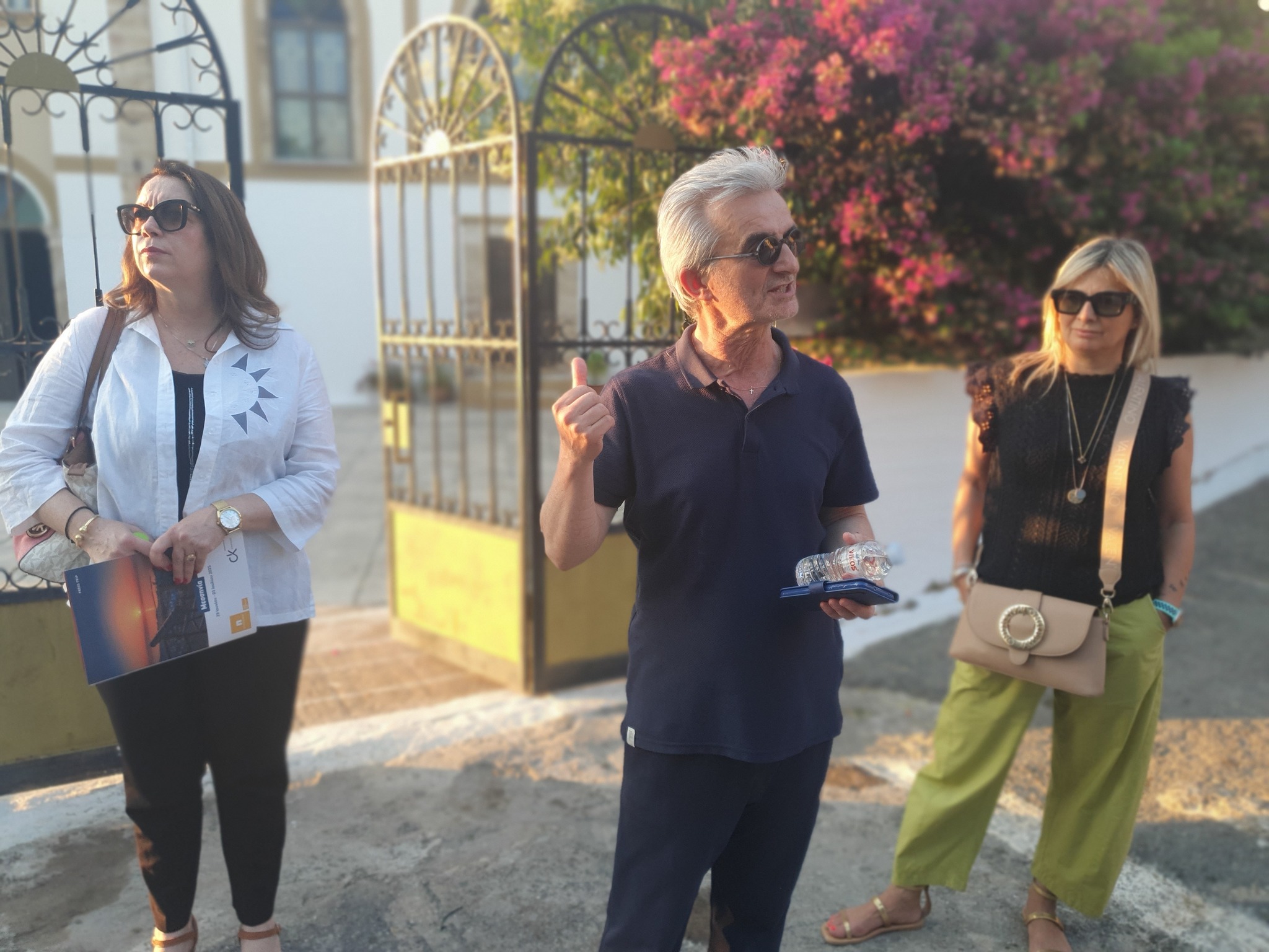 Η ξενάγηση έγινε από τον Τέλη Γκιουλή εκπαιδευτικό, ιστορικό και αναλυτή με ενεργό δράση στα πολιτιστικά δρώμενα του τόπου του. Η αίσθηση της ζεστής διάχυτη παντού ωστόσο ένα ελαφρύ αεράκι βοήθησε την ξενάγηση. Η Κυπαρισσία καταγράφεται και Αρκαδιά στο πέρασμα των αιώνων, ανέφερε ο κ. Γκιουλής.