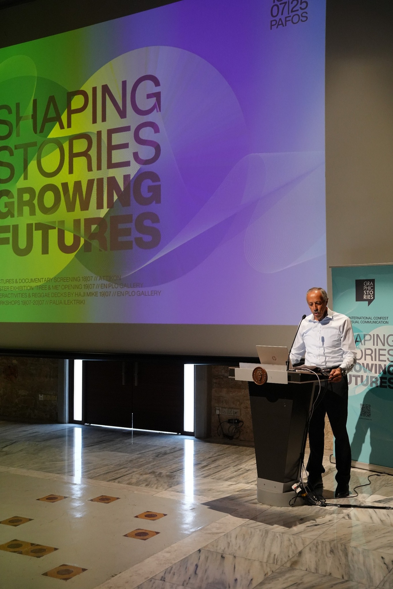 Την εκδήλωση προλόγισαν ο Γιώργος Πίτρος, Πρόεδρος της Επιτροπής Πολιτισμού και Παιδείας του Δήμου Πάφου ο οποίος ανέφερε πως αποτελεί μεγάλη τιμή για τον Δήμο Πάφου το γεγονός ότι φιλοξενούν φέτος στην Πάφο – για πρώτη φορά – αυτό το πολύ σημαντικό γεγονός στον τομέα της οπτικής επικοινωνίας και των γραφικών τεχνών.