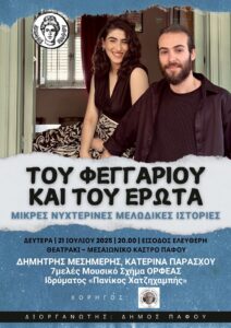 «Του φεγγαριού και του Έρωτα»,τη Δευτέρα, 21 Ιουλίου 2025, ώρα 8:00 μ.μ., στο θεατράκι δίπλα από το Μεσαιωνικό Κάστρο στην Κάτω Πάφο.