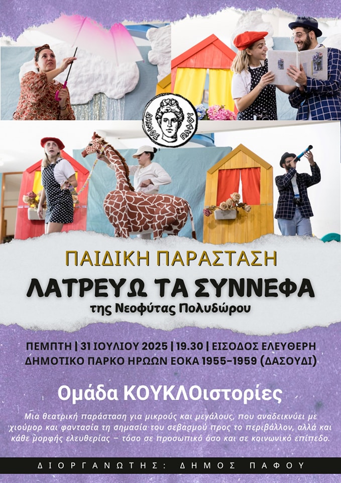 Ο Δήμος Πάφου συνεχίζει το καλοκαιρινό του πολιτιστικό πρόγραμμα με δύο ξεχωριστές εκδηλώσεις για μικρούς και μεγάλους!