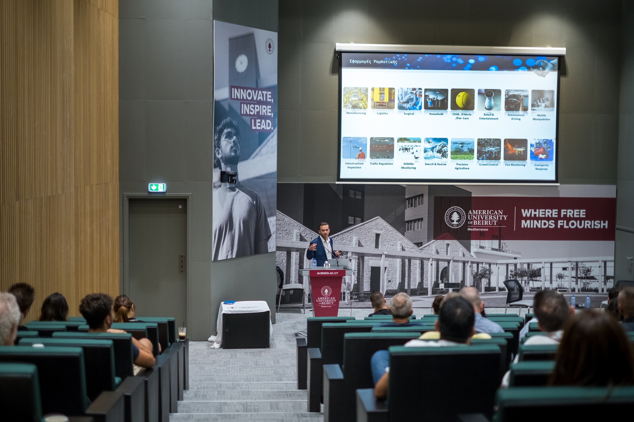 Με ιδιαίτερη επιτυχία πραγματοποιήθηκε στο AUB Mediterraneo η δημόσια διάλεξη με θέμα: «Έξυπνη Ρομποτική και Τεχνητή Νοημοσύνη: Το Παρόν και το Μέλλον», που οργάνωσε το Πανεπιστήμιο με προσκεκλημένο ομιλητή τον Δρα Αλέξανδρο Κουρή, ερευνητή στο Samsung AI Center στο Κέιμπριτζ του Ηνωμένου Βασιλείου.