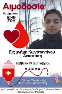 Το Σάββατο 13 Σεπτεμβρίου θα γίνει αιμοδοσία εις μνήμη του Κωνσταντίνου Αναστάση στην Πάφο.