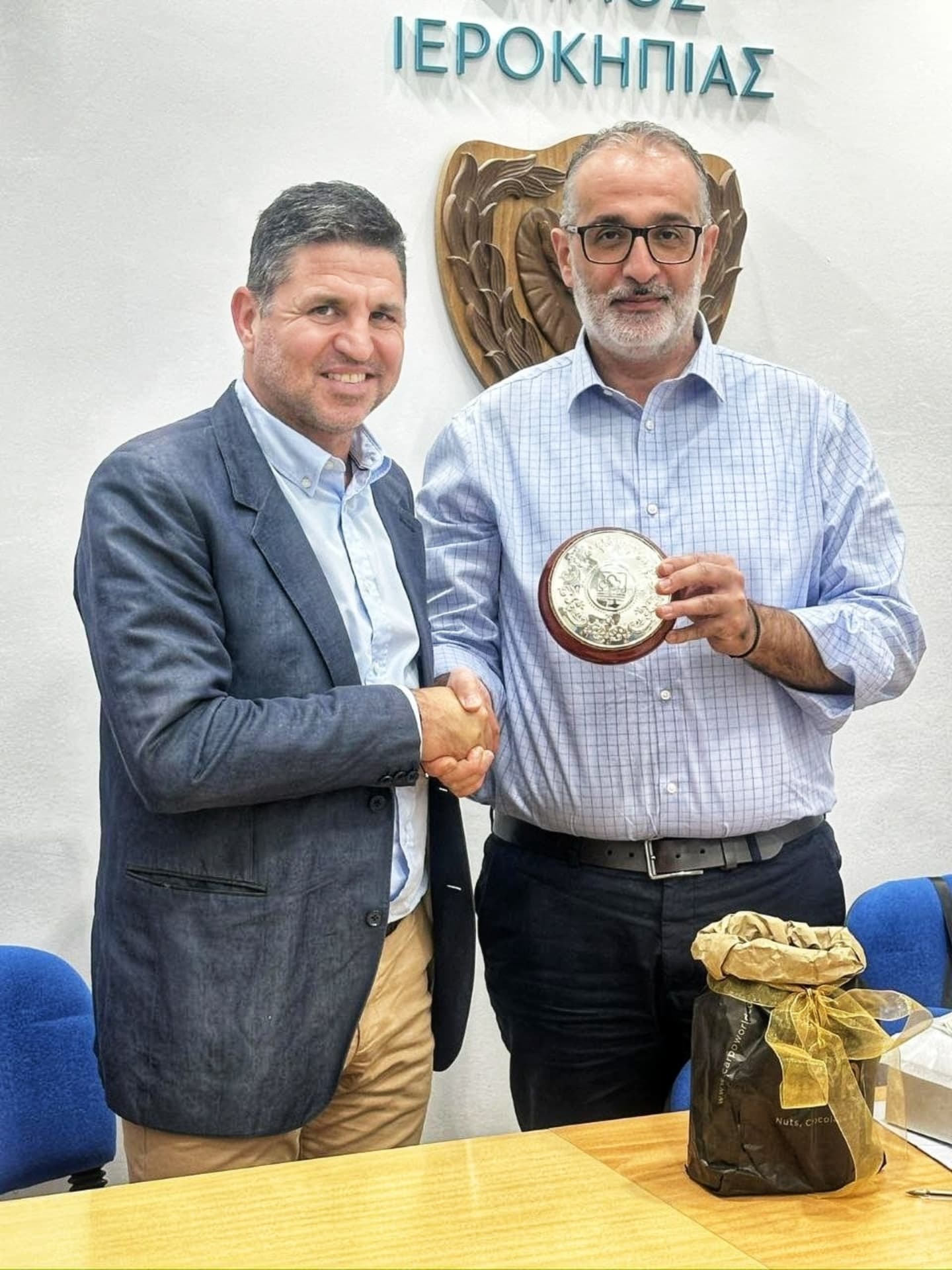 Ο Δήμος Ιεροκηπίας υποδέχθηκε με χαρά την αντιπροσωπεία του αδελφοποιημένου Δήμου Αγίας Παρασκευής Αττικής, σε μια επίσκεψη που έχει πλέον γίνει θεσμός, με αφορμή τη διοργάνωση των εκδηλώσεων Ιεροκήπια 2025.