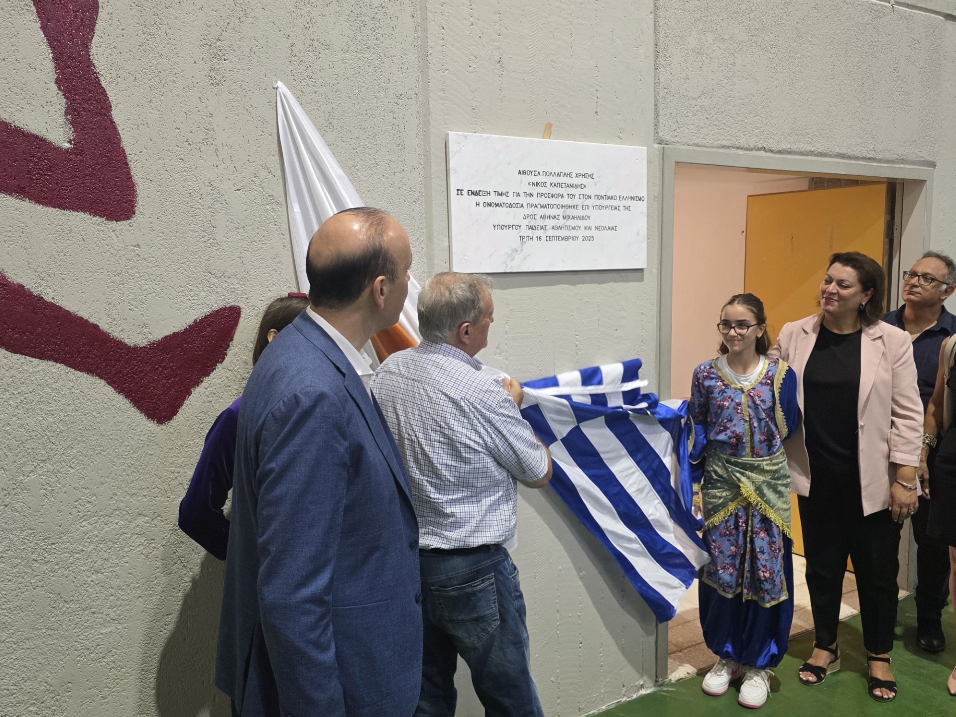 Η Δρ Αθηνά Μιχαηλίδου ακολούθως αναφέρθηκε και στην ιδιαίτερη τελετή που αφορά στην ονοματοδοσία μιας αίθουσας της κλειστής αίθουσας του Γυμνασίου Παναγίας Θεοσκέπαστης με το όνομα του Νίκου Καπετανίδη.