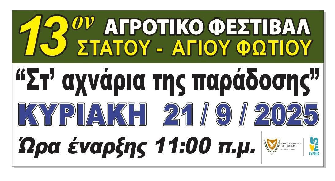 Με σύνθημα «Στ’ αχνάρια της παράδοσης», ο γραφικός ορεινός οικισμός Στατός – Άγιος Φώτιος ετοιμάζεται να υποδεχτεί το 13ο Αγροτικό Φεστιβάλ την Κυριακή 21 Σεπτεμβρίου 2025, με ώρα έναρξης τις 11:00 π.μ.