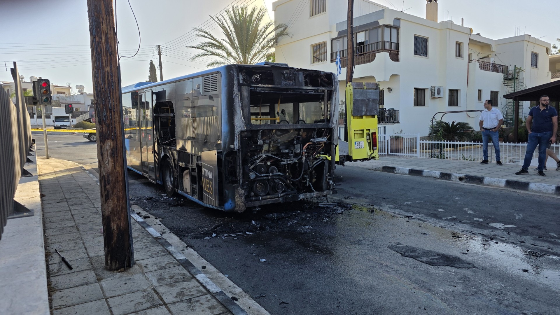 Σε δηλώσεις του στους δημοσιογράφους ο κ. Ροδοσθένους ανέφερε πως εκδηλώθηκαν αρκετές ζημιές στο λεωφορείο, προσθέτοντας πως το λεωφορείο διαθέτει αυτόματο σύστημα πυρόσβεσης το οποίο αν και λειτούργησε δεν έγινε εφικτό να κατασβησθεί η πυρκαγιά, σύμφωνα με την μαρτυρία του οδηγού, όπως είπε.