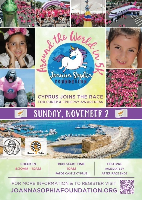 Το Joanna Sophia Foundation (ιδρυθέν στην Νέα Υόρκη) συμπράττει με το Round Table 7 Πάφου και με την υποστήριξη του Δήμου Πάφου διοργανώνουν την Κυριακή, 2 Νοεμβρίου 2025, στις 10:00π.μ. στην Πλατεία Κάστρου στην Πάφο, το 1ο Joanna Sophia Fun Run/Walk Around the World in 5km, ευαισθητοποιώντας για την επιληψία και τον αιφνίδιο θάνατο στην επιληψία (SUDEP).