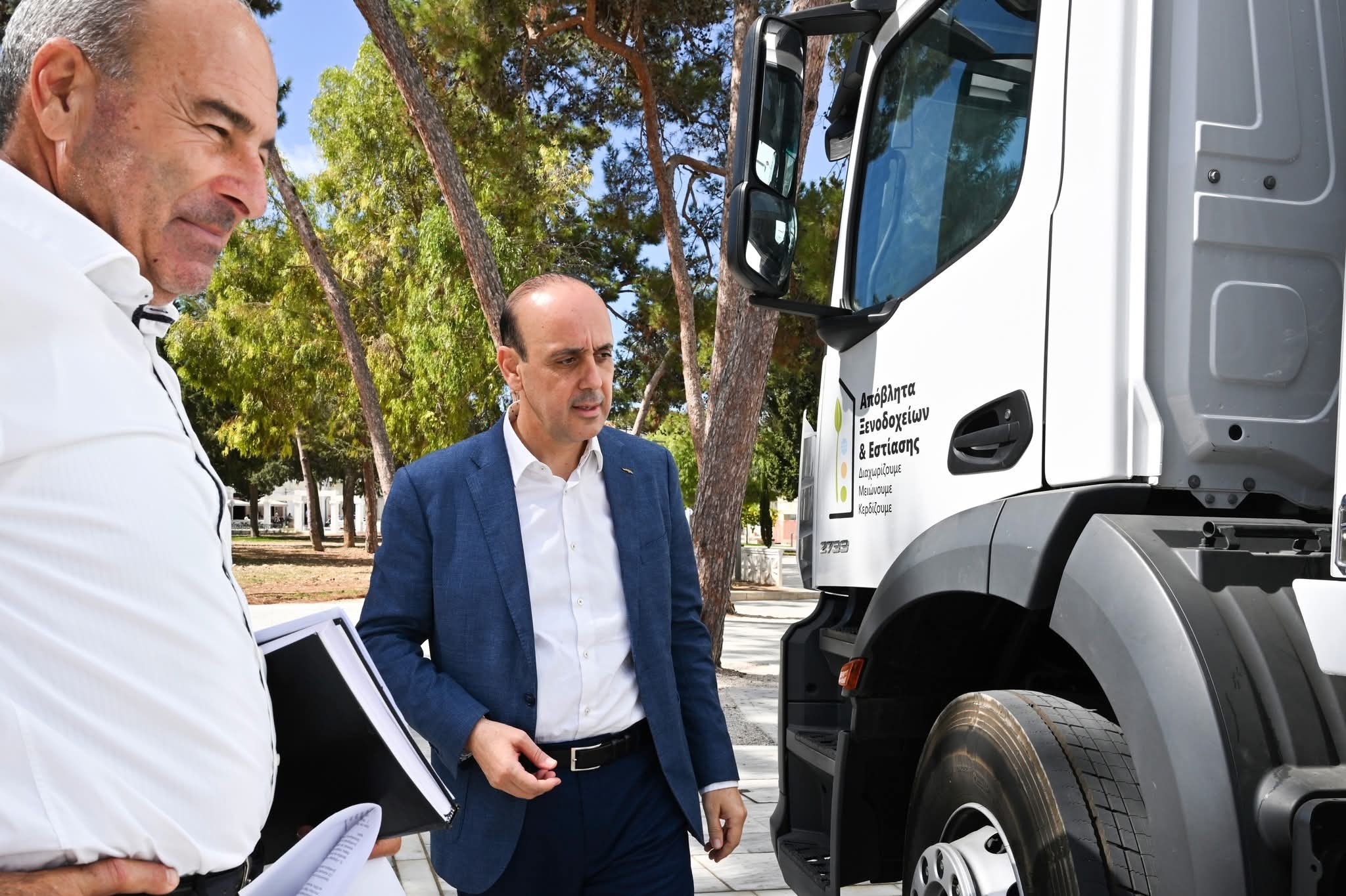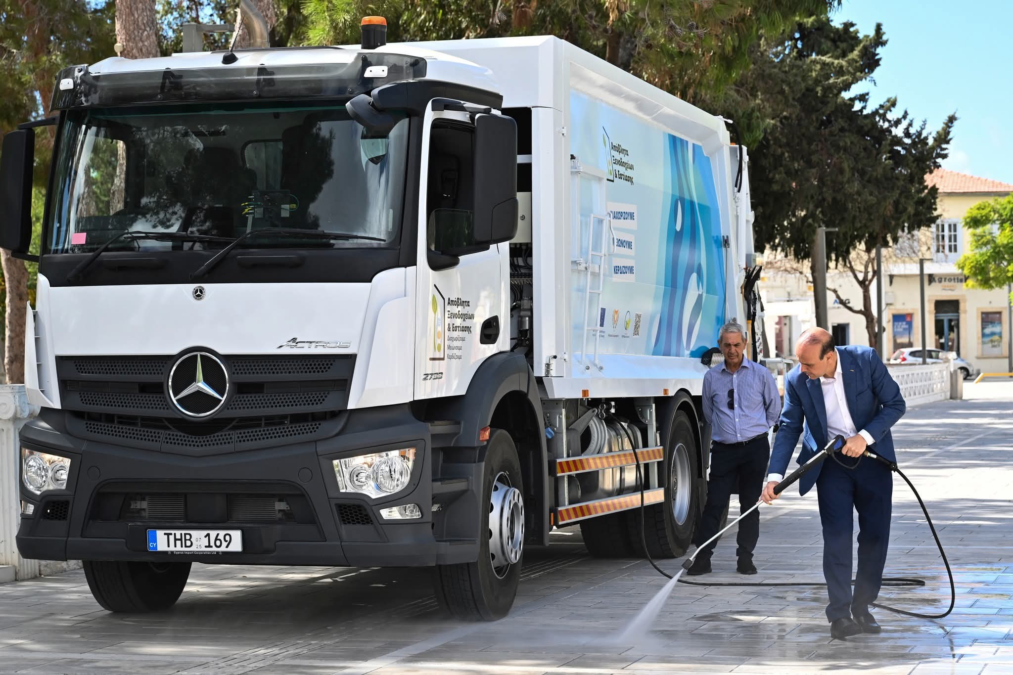 Πραγματοποιήθηκε σήμερα η παραλαβή δύο νέων, σύγχρονης τεχνολογίας, απορριμματοφόρων οχημάτων, ένα για τον Δήμο Πάφου και ένα για τον Δήμο Ακάμα, στην Πλατεία 28ης Οκτωβρίου, έξω από το Δημοτικό Μέ-γαρο. Η παραλαβή ενισχύει ουσιαστικά την επιχειρησιακή ικανότητα του Δήμου Πάφου στον τομέα της καθα-ριότητας και της περιβαλλοντικής διαχείρισης. Σημειώνεται ότι τα δύο απορριμματοφόρα παραλήφθηκαν αντί-στοιχα από τον Δήμαρχο Πάφου, κ. Φαίδωνα Φαίδωνος, και από τον Δήμαρχο Ακάμα, κ. Μαρίνο Λάμπρου.