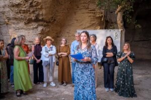 Στη συνέχεια, η επιμελήτρια της έκθεσης, Δρ Catherine Louis Νικήτα, παρουσίασε τα έργα, προσκαλώντας το κοινό σε μια περιήγηση που συνδέει την τέχνη με την ιστορία και τη μνήμη του τόπου, ευχόμενη η έκθεση να αποτελέσει έναυσμα για βαθύτερη γνωριμία με τον λόφο και την προστασία του από τους αρμόδιους φορείς.