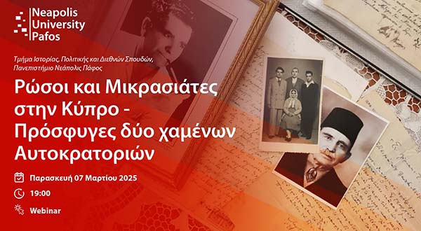Διαδικτυακή διάλεξη με θέμα «Ρώσοι και Μικρασιάτες στην Κύπρο – Πρόσφυγες δύο…