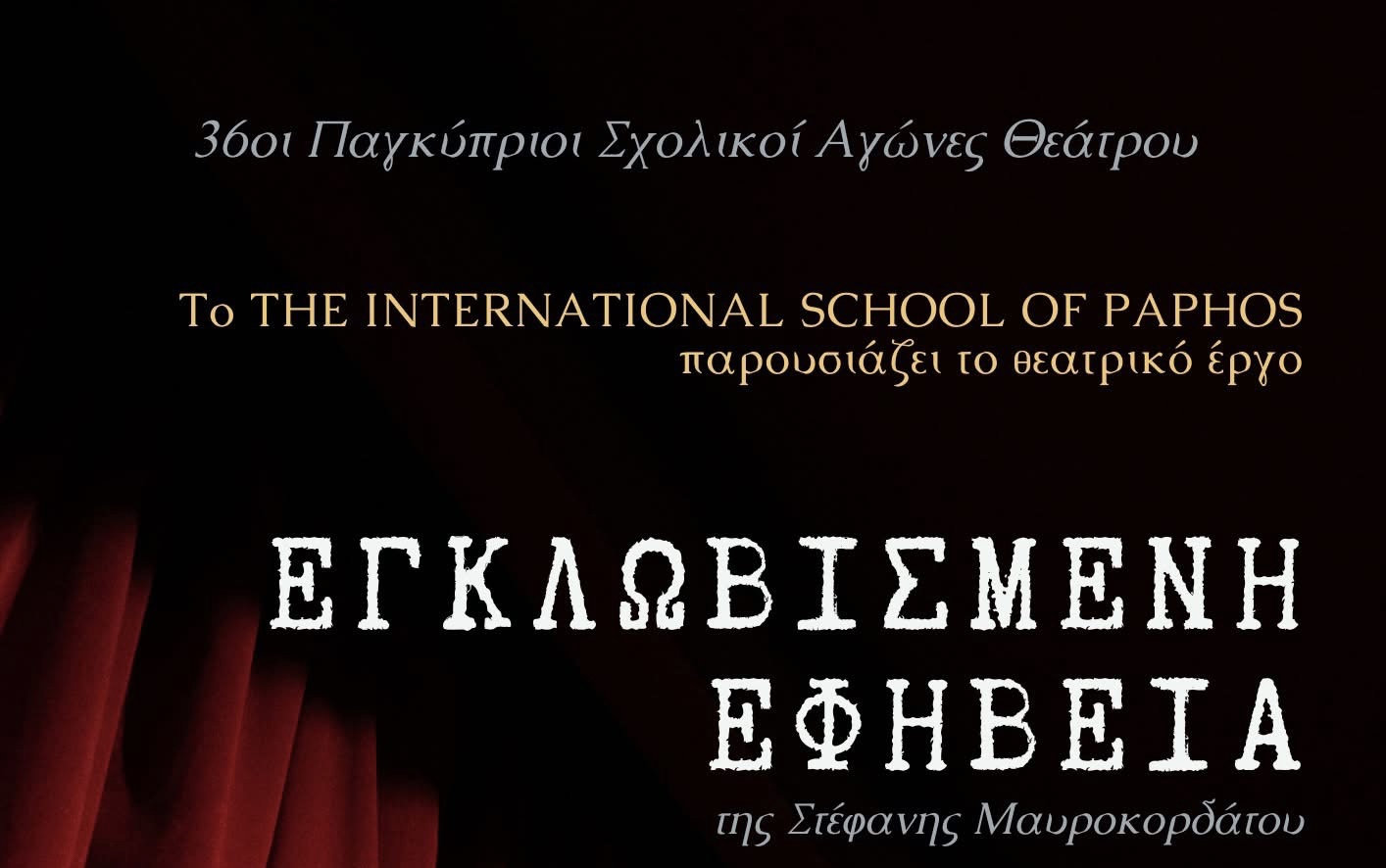 Παρασκευή, 27 Μαρτίου 2025, 20:00 Κλειστή Αίθουσα Πολλαπλών Χρήσεων του σχολείου To The International School of Paphos (ISOP) και το…
